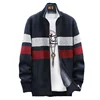 Cardigan tricoté à col montant pour homme, veste épaissie en peluche, pull over décontracté, nouvelle collection 2021