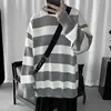 Pull à rayures pour homme et femme, vêtement ample, assorti, contraste, version coréenne, tendance, nouvelle collection automne hiver 2021