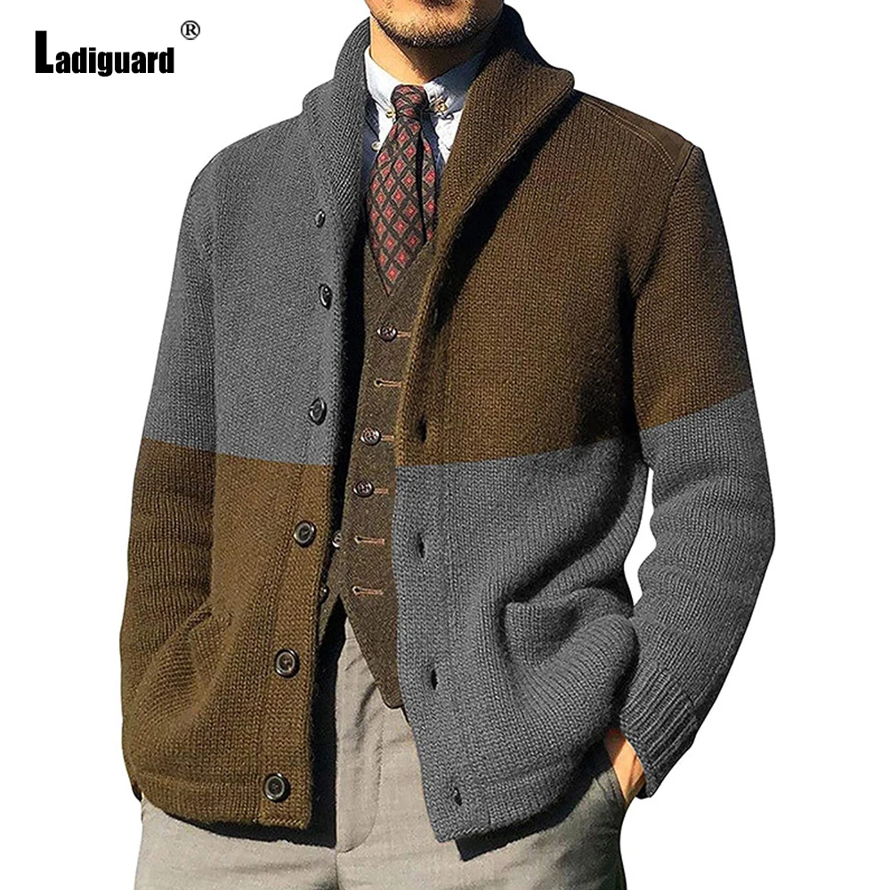 Pull en tricot Style anglais pour hommes, manteaux chauds, Streetwear pour hommes, haut en Patchwork, Cardigans amples, pulls, collection hiver 2021