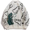 Pull tricoté à col rond pour homme, style Harajuku, Streetwear, Hip Hop, dessin animé de dinosaure, surdimensionné, décontracté, Couple, Vintage