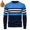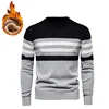 Chandails en coton et velours pour homme, pull décontracté à rayures, coupe ajustée, chaud, à la mode, nouvelle collection hiver