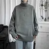 Pull à col roulé noir pour homme, style hongkongais, ample, porté à même la peau, version coréenne, vêtements pour couple