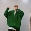 Cardigan à col montant avec fermeture éclair pour homme, veste ample, à la mode, grande version verte, y2k, automne hiver