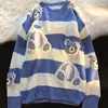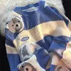 Pull en tricot vintage japonais avec broderie d'ours rétro pour homme et femme, streetwear surdimensionné, automne et hiver