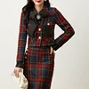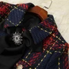 Ensemble veste et jupe en laine Tweed pour femme, tenue de bureau, de fête, avec nœud papillon, Vintage, 2 pièces, mode automne hiver