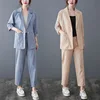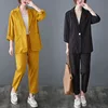 Costume de bureau pour femme, ensemble deux pièces, Blazer élégant, ample, décontracté, veste, vêtements de travail, printemps automne, 2021