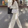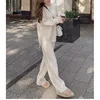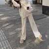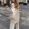 Ensemble de pantalons tricotés pour femmes, pull ample à manches longues et col rond, sweat shirt de sport décontracté, couleur unie, pantalon à jambes larges, 2021