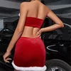 Jupe portefeuille contrastée pour femmes, vêtements d'hiver de noël en peluche douce avec col en ligne, jupe portefeuille pour les hanches, vêtements pour femmes pour le nouvel an 2022