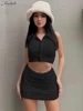Macheda – mini jupe slim à simple boutonnage pour femme, haut court à taille basse, vêtement chic de rue, deux pièces, mode printemps