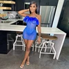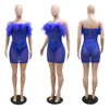 Wishyear – ensemble haut tubulaire et Mini jupe en maille transparente, plumes, deux pièces, tenue Sexy pour femme, tenue de Club, moulante, 2022