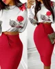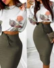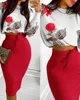 Ensemble 2 pièces chemisier et jupe à imprimé Floral pour Femme, haut court et cordon froncé, tenue de bureau, collection automne 2021