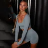 Ensemble de 2 pièces de Yoga sans couture pour femmes, haut court Sexy à manches longues, vêtements d'entraînement, combinaisons de sport pour femmes