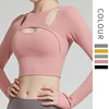 T shirt de Yoga à manches longues pour femmes, haut de Sport en maille respirante avec un trou de pouce dans le dos, de Fitness, d'entraînement et de gymnastique
