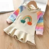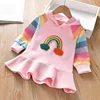 Pull à manches longues brodé arc en ciel pour enfants, robes de princesse décontractées à capuche
