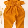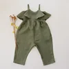 Barboteuse d'été pour nouveau né fille, combinaisons pour bébé, combinaisons de jeu une pièce en coton et lin, mousseline, vêtements sans manches