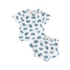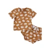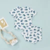 Tenue d'été en coton imprimé coquille pour nouveau né, 2 pièces, pull à manches courtes et col rond pour tout petit, T shirts Shorts avec cordon de serrage