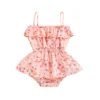 Joli combishort en coton pour petites filles, vêtements pour enfants, col carré, jupe à taille élastique, col plissé, Triangle, entrejambe, body pour l'été
