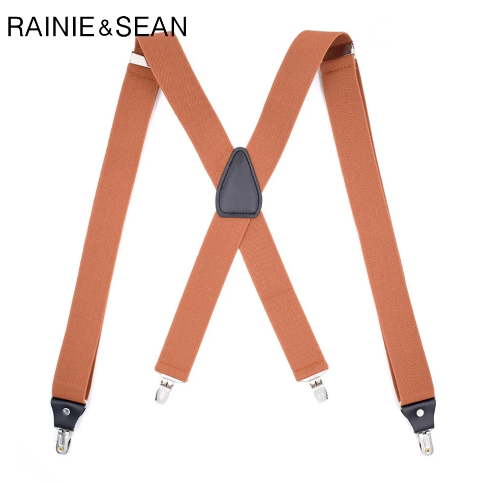 RAINIE SEAN – bretelles en cuir marron pour homme, 120cm, 4 pinces, pour pantalon, ceinture, Vintage, mariage