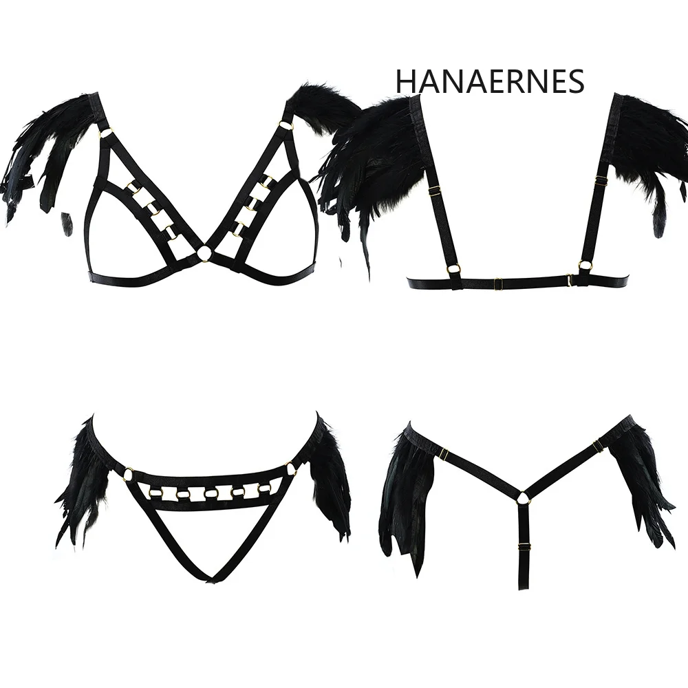 HANAERNES – harnais avec épaulettes en plumes pour femme, bandeau, Sexy, festif, Lingerie, barre, danse, ajustable