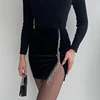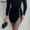 Rapwriter – Mini jupe Vintage en velours noir pour femme, tenue élégante avec chaîne et pompon, fendue sur le côté, mode des années 90