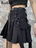 InsGoth – Mini jupe plissée Harajuku Grunge y2k à poches pour femmes, mode coréenne, taille haute, avec ruban et boucle
