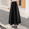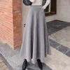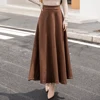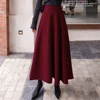 Jupe trapèze Style français, demi jupe longue en tissu de laine pour femmes, couleur unie, grande taille haute, épaisse, automne et hiver