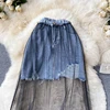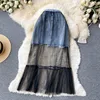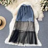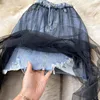 Jupe Tutu en maille Tulle bleu, Sexy, taille haute, longue, en jean, à volants, Denim, Patchwork, nouvelle collection printemps été 2022