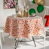Nappe de table ronde en coton et lin avec pompon, cercle de noël, flocon de neige, cerf, serviette de couverture, décoration de vacances pour la maison