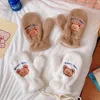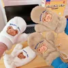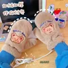 Gants en peluche pour filles, hiver, ours brodé, mignon, Plus velours, cyclisme, suspendus au cou, fourrure