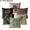 Housse de coussin en lin, taie d'oreiller, Animal, tigre, fleur, décoration de maison, ferme, extérieur, 40x40, 45x45, noir, vert, canapé