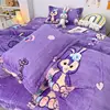 Disney – housse de couette double face en polaire, ensemble quatre pièces épais, motif dessin animé Mickey, corail, automne et hiver