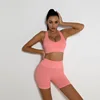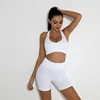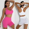 Yoga feminino esporte conjunto agasalho roupas femininas sutiã e calças curtas 2 peça ginásio de fitness cintura alta biker leggings esportivas