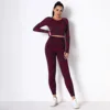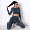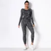 Conjunto esportivo feminino sem costura, peça conjunto academia yoga manga comprida cintura alta calça legging camuflada