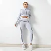 Conjunto de vestimentas femininas com 2 ou 3 peças, roupas de ginástica para mulheres, conjunto com calças legging de cintura alta, zíper, top crop para corrida, esportes, camisetas de yoga