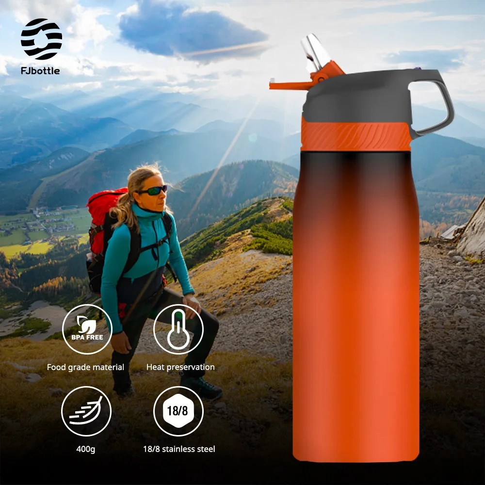 Fjbottle esportes garrafa térmica caminhadas garrafa de vácuo 316 aço inoxidável multicolorido palha garrafa de água para viagens e ao ar livre