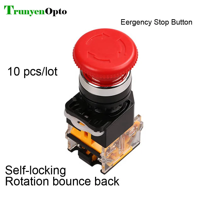 1 pces interruptor de botão de parada de emergência auto travamento e salto para trás após a rotação cogumelo cabeça abertura tamanho 22mm si esterlina