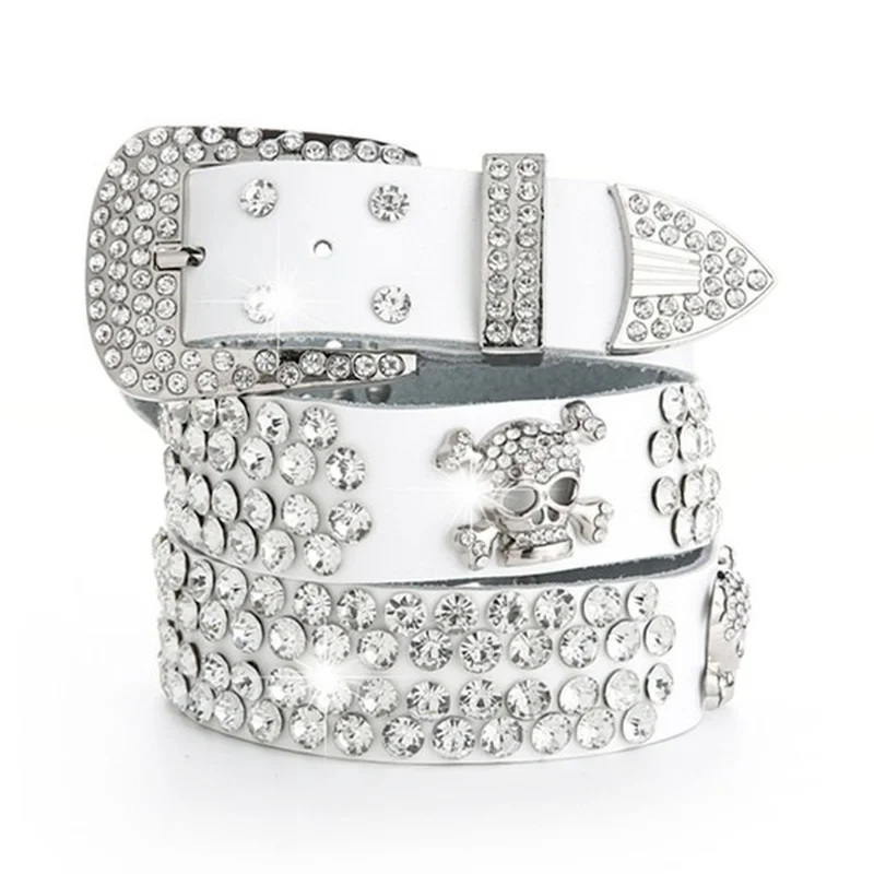 Cinto de pele de vaca, de alta qualidade, fivela larga, feminino, vintage, strass, caveira, cinto feminino para vestido jeans