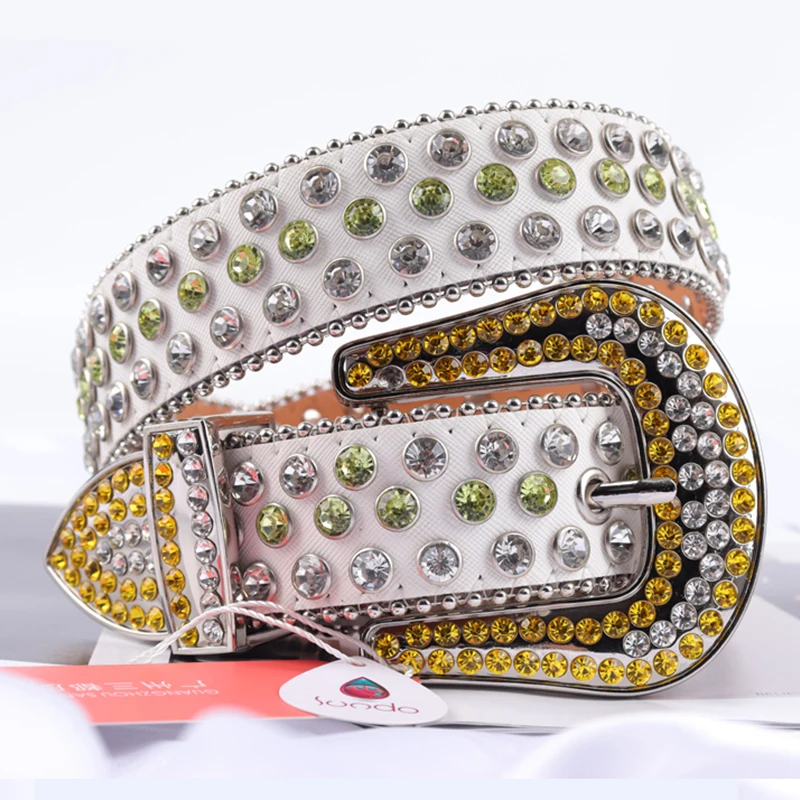 Cintos de diamante para calças de brim ocidental cowboy bling fivela removível cravejado strass cinto