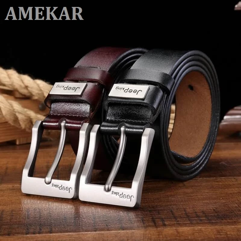 Couro genuíno jeans cinto para homens de alta qualidade pino fivela de pele de vaca cintos casuais negócios cowboy cintura cintos designer