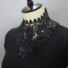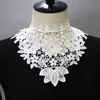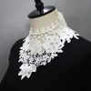 Linbaiway camisa feminina com laço floral e gola falsa, colar decorativo branco e preto com bordado