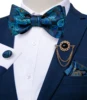 Novo design gravata borboleta azul e dourada masculina, gravata estilo paisley, de seda, com bolsos e broche, para negócios, casamento, festa