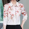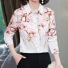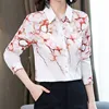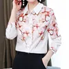 Camisas de seda femininas brancas e pesadas, blusa de cetim estampada para mulheres, camisas de manga comprida, moda casual 3xg