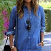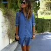 Camisa jeans feminina mamãe, blusa casual com bolso, vestido em jeans