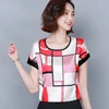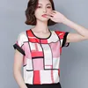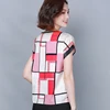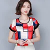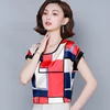 Blusas femininas de seda coreana pesada impressão de cetim blusas plus size xadrez casual de mulher blusa 2020