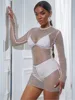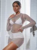 Sruby 2021 outono inverno novo comprimento médio cor sólida malha oco para fora flash diamante versátil temperamento vestido apertado