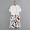 2021 nova retalhos vestido de linho de algodão feminino verão o pescoço manga curta vestidos de linha a feminino vintage botão solto vestido