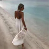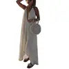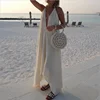 Praia outing maxi vestido casual sólido elegante vestidos para mulher magro simples vestido profundo com decote em v sem costas sexy roupas femininas