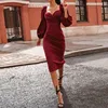 Outono inverno vestido com decote em v fora do ombro manga longa vestidos elegantes para mulher vestido de festa à noite