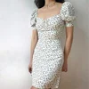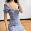 Vestido de verão retro boho feminino gravata pescoço floral impressão mini sexy vestido branco elegante puff manga vestidos coreano