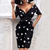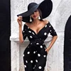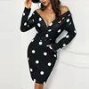 Vestido versátil preto sexy ponto onda vestido elegante vestidos para mulher profundo decote em v manga longa magro